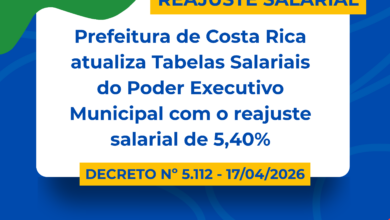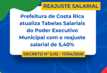 Prefeitura de Costa Rica atualiza Tabelas Salariais do Poder Executivo Municipal com o reajuste salarial de 5,40%